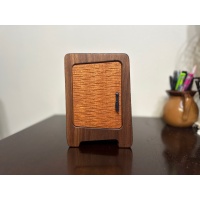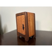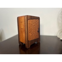 Oleg's Wardrobe is in my opinion one of Dee's best puzzles! It is a sequential discovery puzzle with more than 15 steps to find and release the prize. It's made from black walnut and African striped mahogany. The dimensions are 5" x 7" x 3.5".
