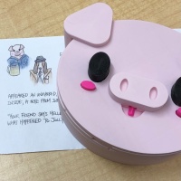 The puzzle box is made of PLA, with the "prize" made from hardened polymer clay. I've provided different photos under yellow or white light so you can better judge the color of the pink pig. There's no need to go too crazy with bidding, I will try to list additional copies in the future if there's still demand. Shipping within the USA will be $9. International shipping for most countries will be $28 for a first-class package based on it's weight of ~0.4 kg.