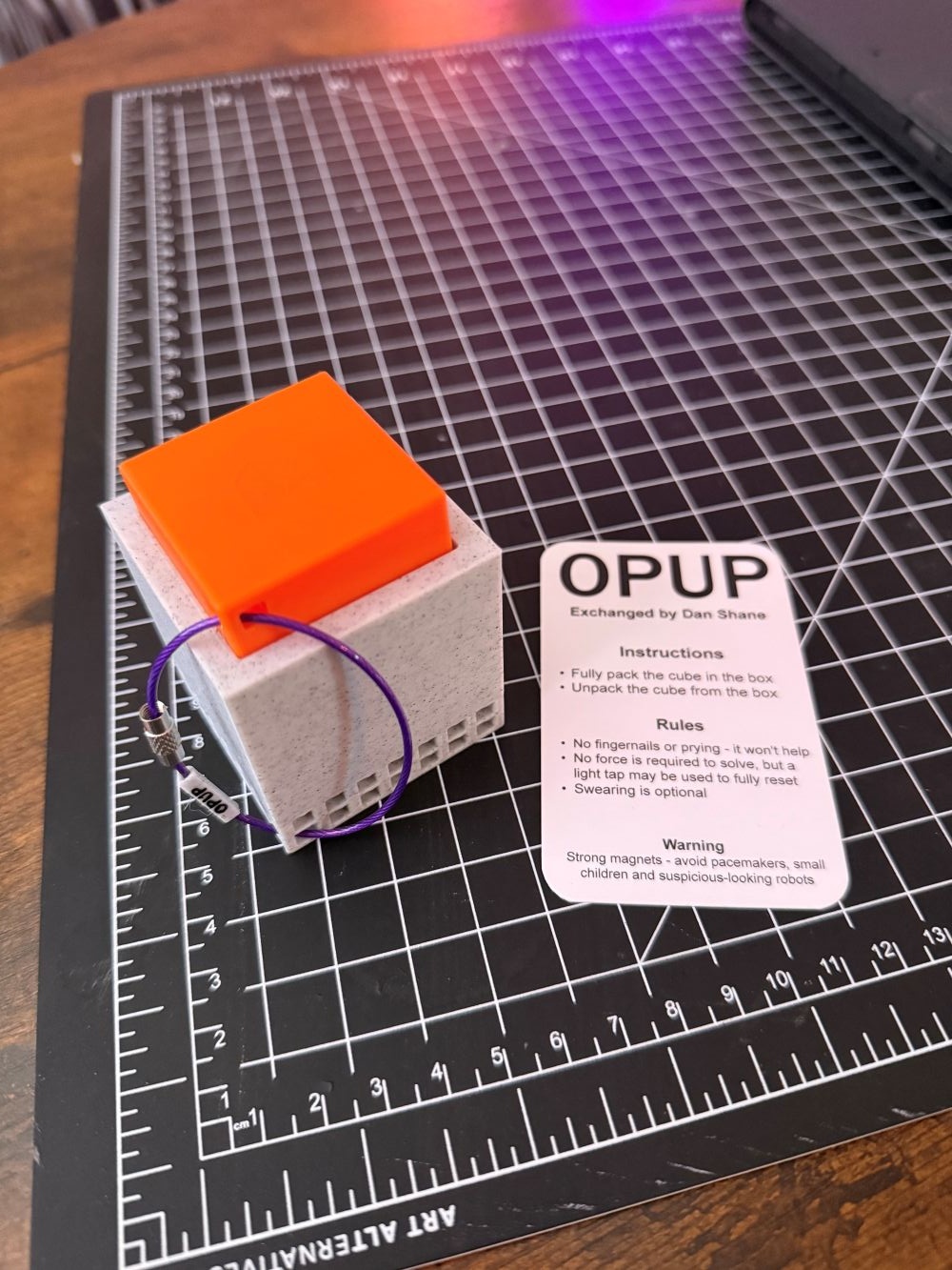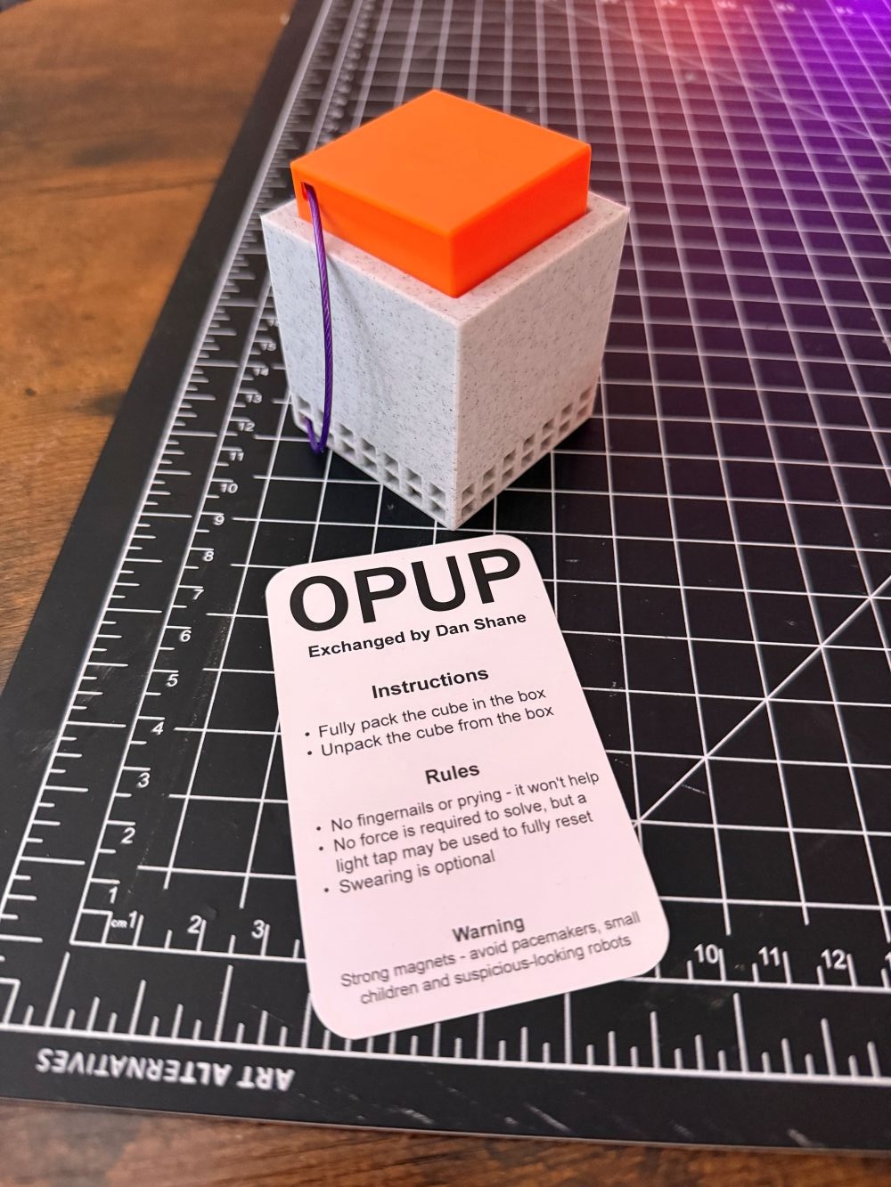 from his websiteCola Conundrum is a sequential discovery puzzle. The goal of this puzzle is to buy yourself a drink from the cola machine. This is a moderately difficult puzzle with approx. 6-7 steps to reach your goal. Any tools needed will be provided to you. No excessive force, banging or spinning is necessary. This puzzle contains small parts, some of which may appear suddenly. Some parts can present a choking hazard, this puzzle is not intended for children. Cola Conundrum is 3d printed fr...