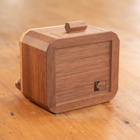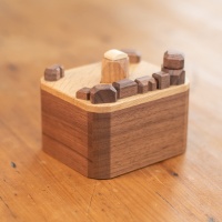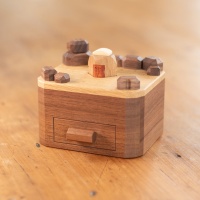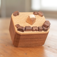 In hand it's a large Karakuri puzzle too, and I've taken an angled photo to show off the 'water ripples' on the surface that catch the light. Which is a really cool touch that Kakuda added by choosing wood who's grain looks like ripples.