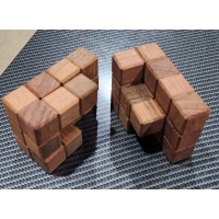 Made of Jatoba wood. Stack the multiple pieces into a cross (+ symbol).