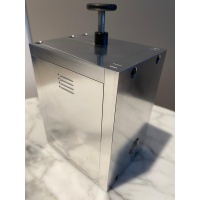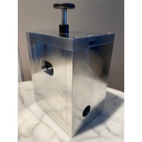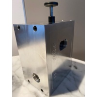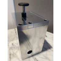 William describes having been fascinated by the game and wanting to incorporate the idea of launching a metal ball into one of his puzzle box designs.  He has succeeded in creating an incredible puzzle which really does hit the jackpot.  The Pachinko box is a shiny solid metal box with a distinctive feature in the form of a plunger sticking out of the end.  There’s a little window on the side that allows a view of the plunger trapping a shiny marble against an internal wall in the box. On the top of the box there’s another window through which a Russian 2 Ruble coin is visible… there are one or two tiny holes around the box, a T-shaped slot on one side and a single round hole in the bottom of the box – which looks about marble-sized. Now the goal is to get both coins out….