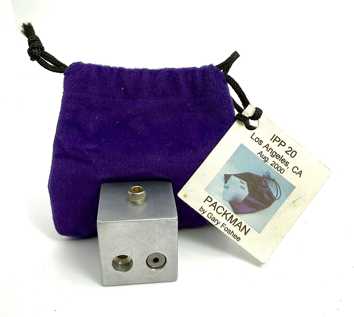 Designed by Gary Foshee. This is one of the original puzzles made by Gary himself to exchange at IPP20 in LA in August 2000. It’s in its original dark purple velvet bag with the tag attached by Gary as given in the exchange.