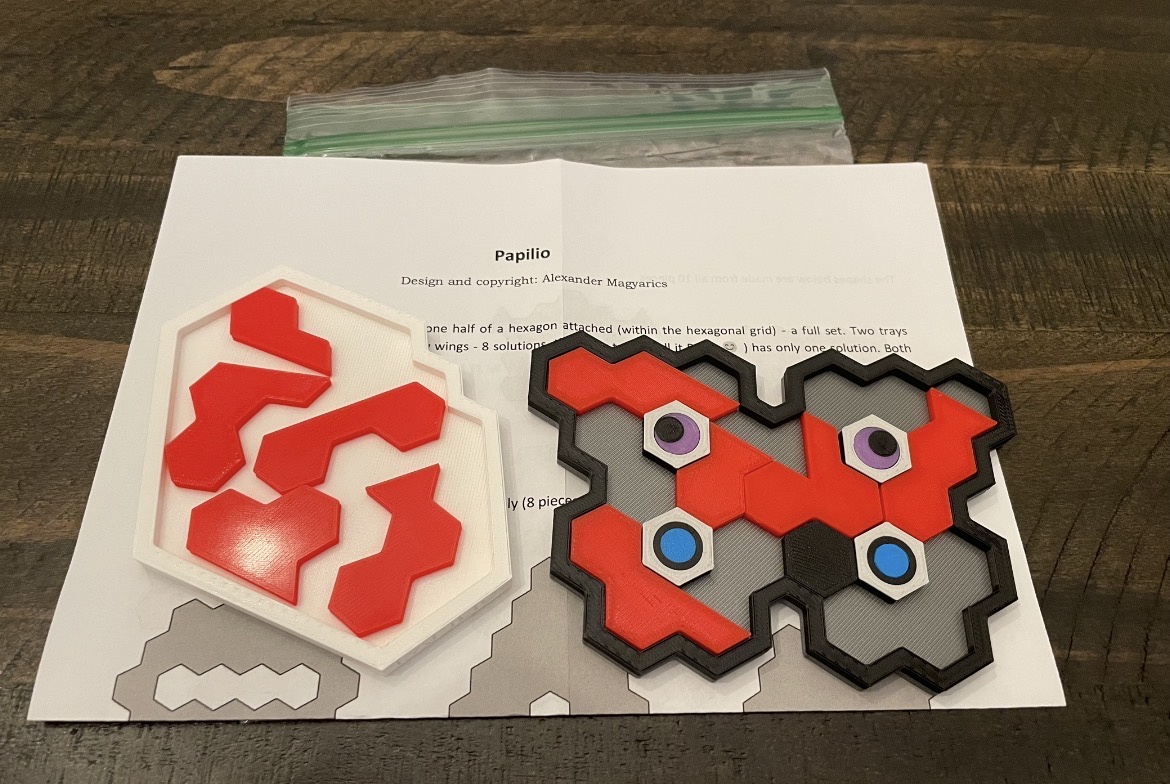 Goal: Pack all red pieces into each tray. Also multiple shape challenges.