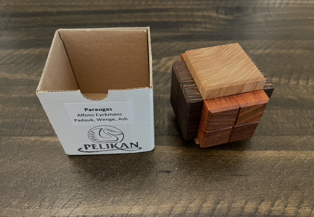 Designed by Osanori Yamamoto and crafted by Pelikan.Goal: Dissassemble and assemble the burr.Woods are Wenge and PadaukPerfect Condition. Comes from a smoke free home and properly stored.Will package with a collector in mind for shipping.*Buyer pays shipping costs and will be added at end of auction. I accept Friends and Family and Goods and Services payments. I understand the importance of G&S with buyer protection and some buyers are not able to utilize F&F.