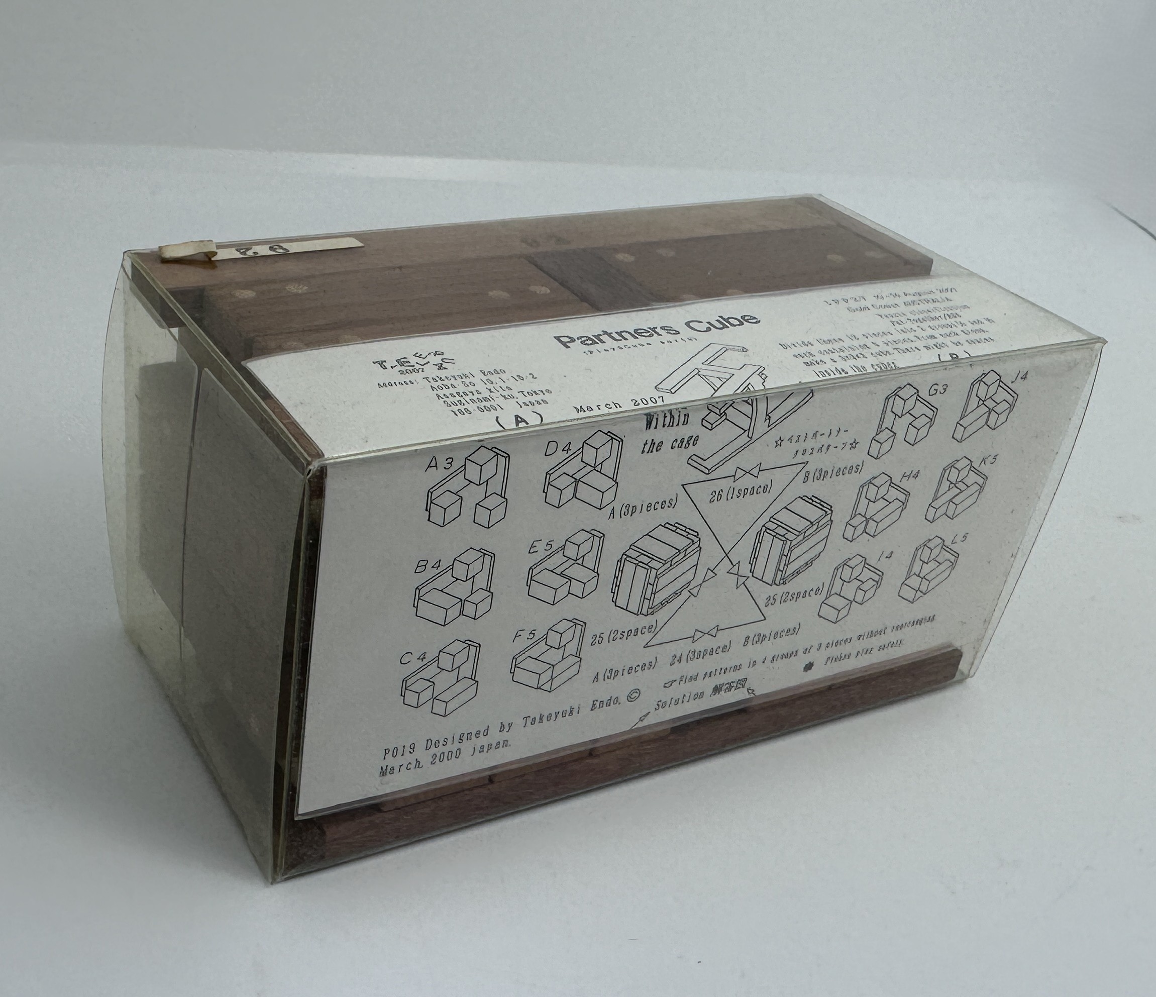 Designed in 2000 by Takeyuki Endo.  He made the puzzle in 2007 as his exchange puzzle for IPP27.