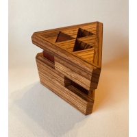 It seems hard to believe that it's been almost 20 years since I first made a small run of this clever packing puzzle design in 2006.  William has graciously allowed me to offer up another run as there were only a dozen copies made in 2006.The original metal version was William’s exchange puzzle at the IPP21 in Tokyo.This version is made using many wood varieties and includes a Stand.  The entire puzzle has been ‘triple buffed’ giving it a very nice sheen.Overall size is a little over 4...