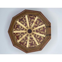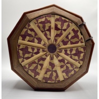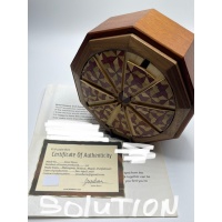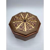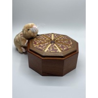 This puzzle box is made entirely out of wood, and that includes wooden hinges made out of an exotic dark wood called Mexican Ebony. The Pi Box is an octagon design with nine wedges of "pie" that move in a secret sequence to unlock the box; the puzzle is solved once all nine pieces are centered. It was released in 2018 on National Pie Day, March 14.
