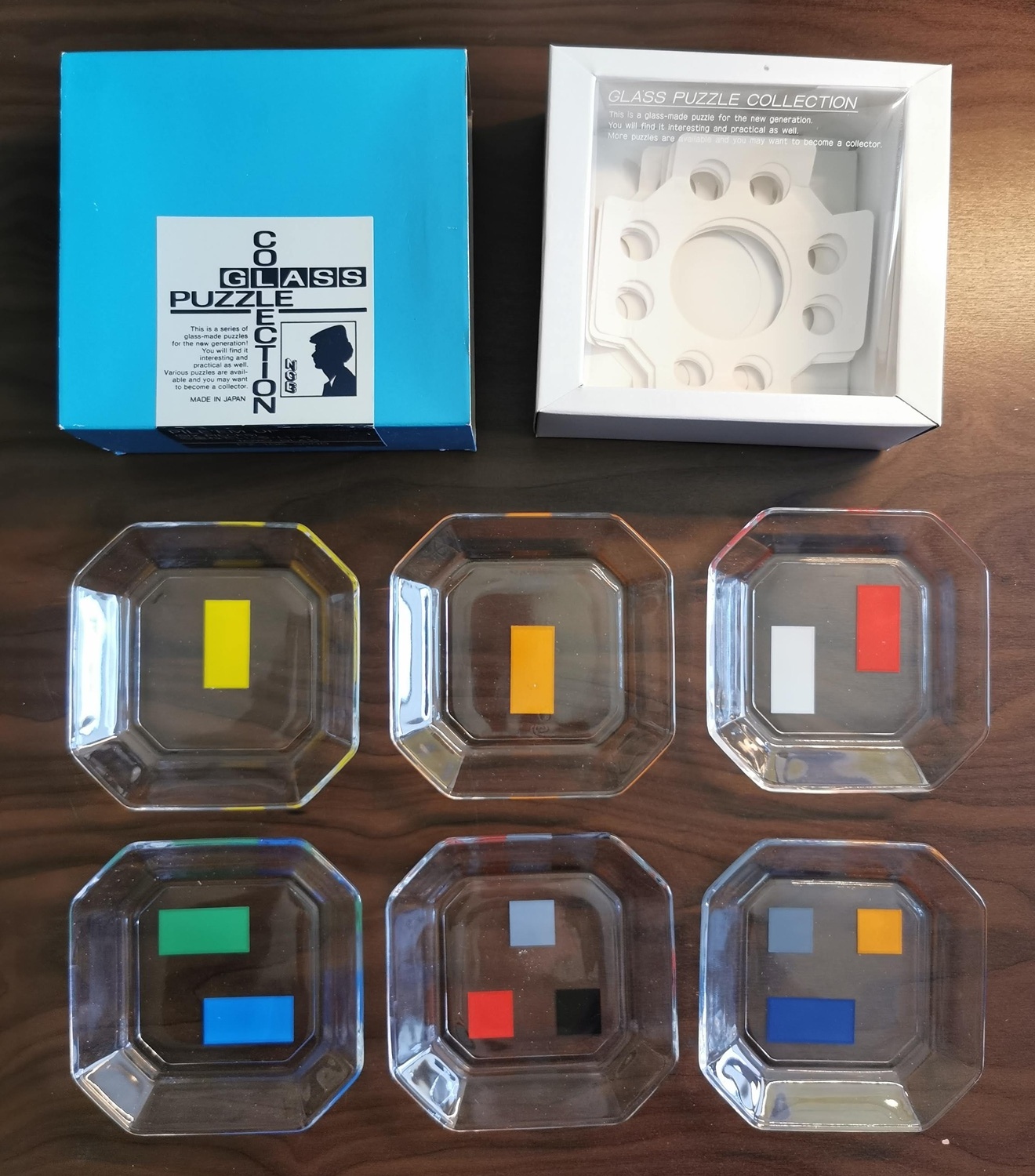 Stack the six glass plates one on top of each other so that the colors of the resulting