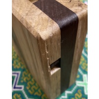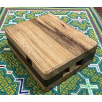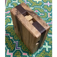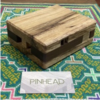 This is Pinhead from Dedwood Crafts. I really love the wood choices with this puzzle, and I found the solve to be super fun and satisfying. I have carefully solved and reset this puzzle a couple times, and the puzzle is in excellent condition. This puzzle is a scratch & dent version, which I believe is due to one small section on the puzzle, and I've included a close up photo showing this section.