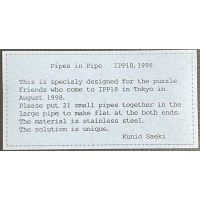 This was the IPP 18 (1998) Exchange Puzzle from Kunio Saeki. All the parts are made from stainless steel. This is a beautiful heavy-duty puzzle that feels great just to hold.
