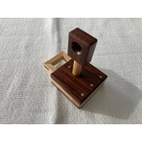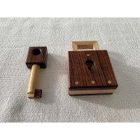 | COMMENTS: | Robert and I have talked about reproducing some of his older work for a while. He sent me a few designs and this lock really grabbed me. Originally a component on his Pirate's Wallet puzzle box, he had many requests for the lock alone. It requires seven steps to solve and has a couple very tricky components. Note that this is a take apart puzzle, and the lock is not suited to actually secure anything since the steps required to solve it preclude the use of the hasp. Construction of this puzzle is outstanding...I'm very very happy with how it turned out. It was a lot of fun to make and required several new jigs and techniques. Fit is outstanding. 60 copies made for sale, each signed and dated. This puzzle is shipped assembled. |