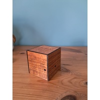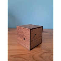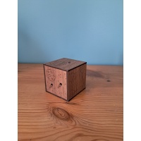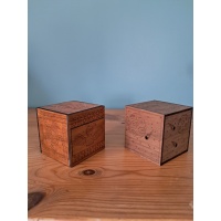These two SD/mechanical puzzle boxes, made in early 2024, take about an hour to solve each and contain a hidden themed token. The Planetary cube (walnut veneer) has a space theme, while the Mayan cube (cherry veneer) features Mayan designs. Each 66x66x66 mm box is 3D printed inside and veneered outside, with 72 numbered sets available.