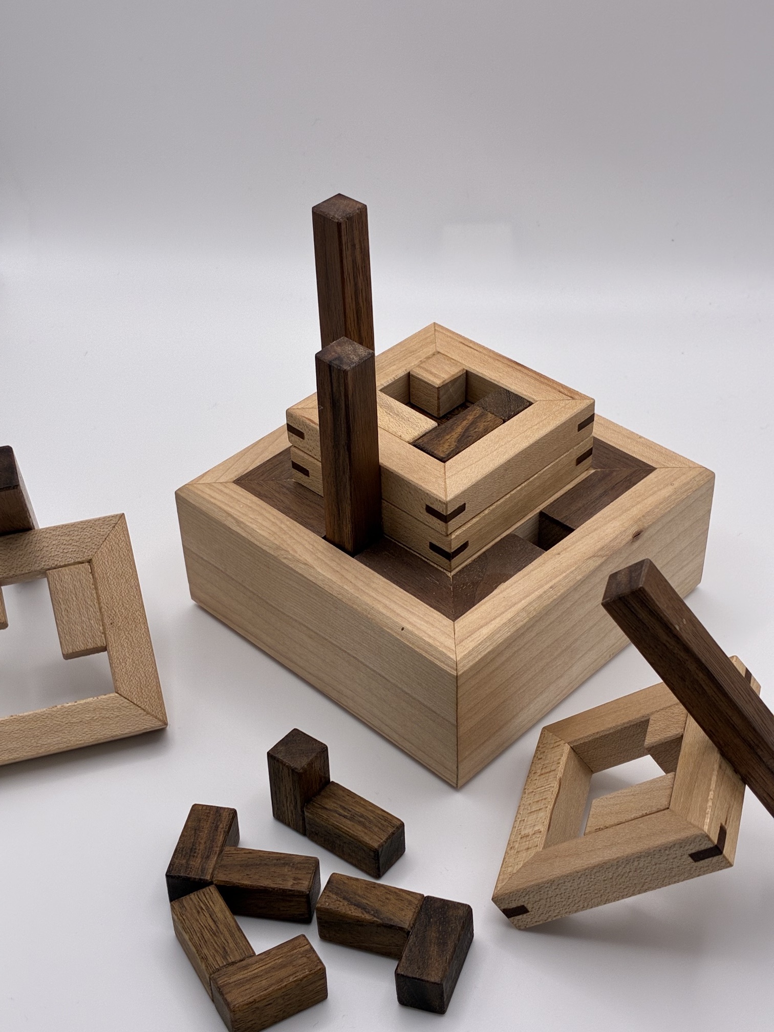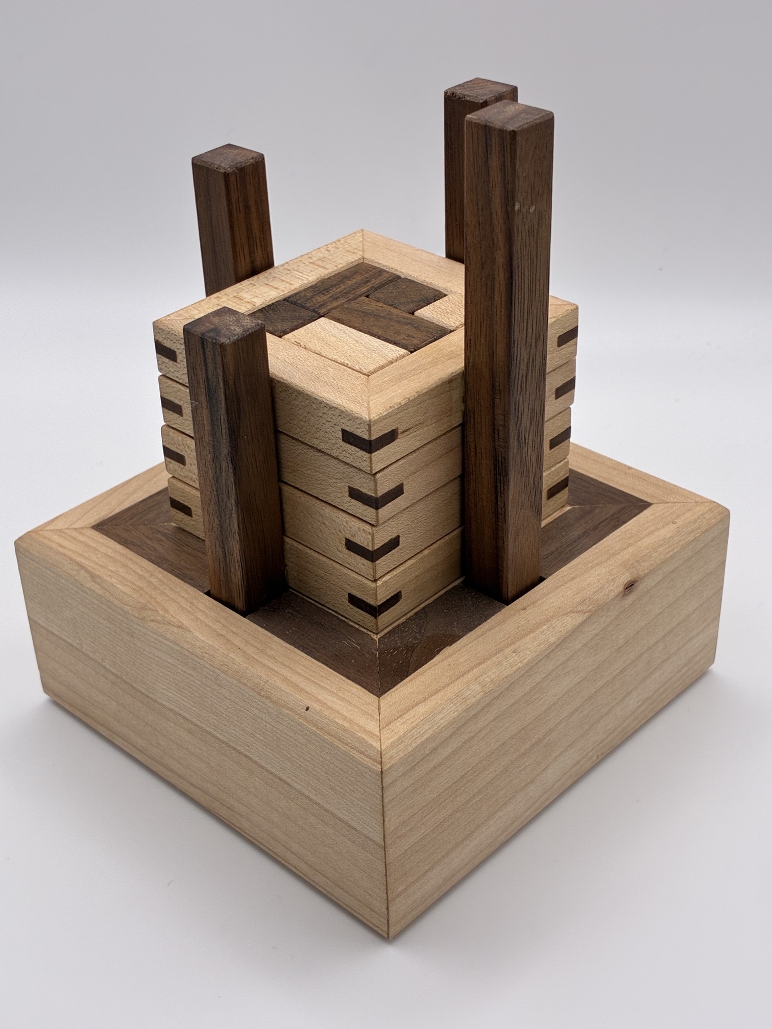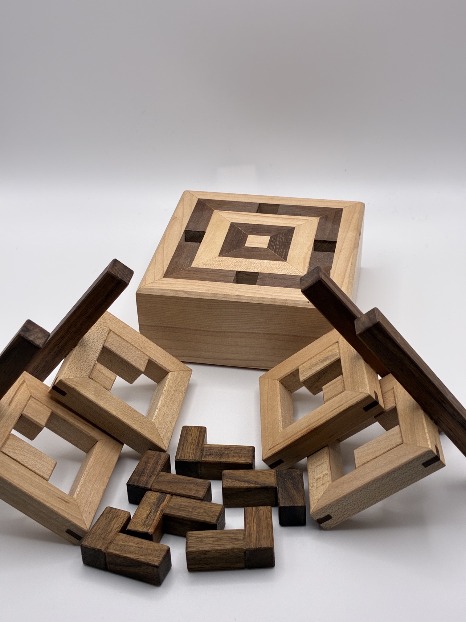 DDD Interlocking Burr Set is a collaborative effort between by Darryl Adams, Bryan Turner and Eric Fuller. This batch is the final release for the foreseeable future.Darryl's inspiration came from Bill Cutler's complete summary of notchable pieces that can be used to form a burr shape. Bill's set of 42 pieces are sufficient to make all 314 solid notchable burrs and thousands of non-solid assemblies.Darryl sought a smaller set that allows enough interesting combinations to guide the solver throug...