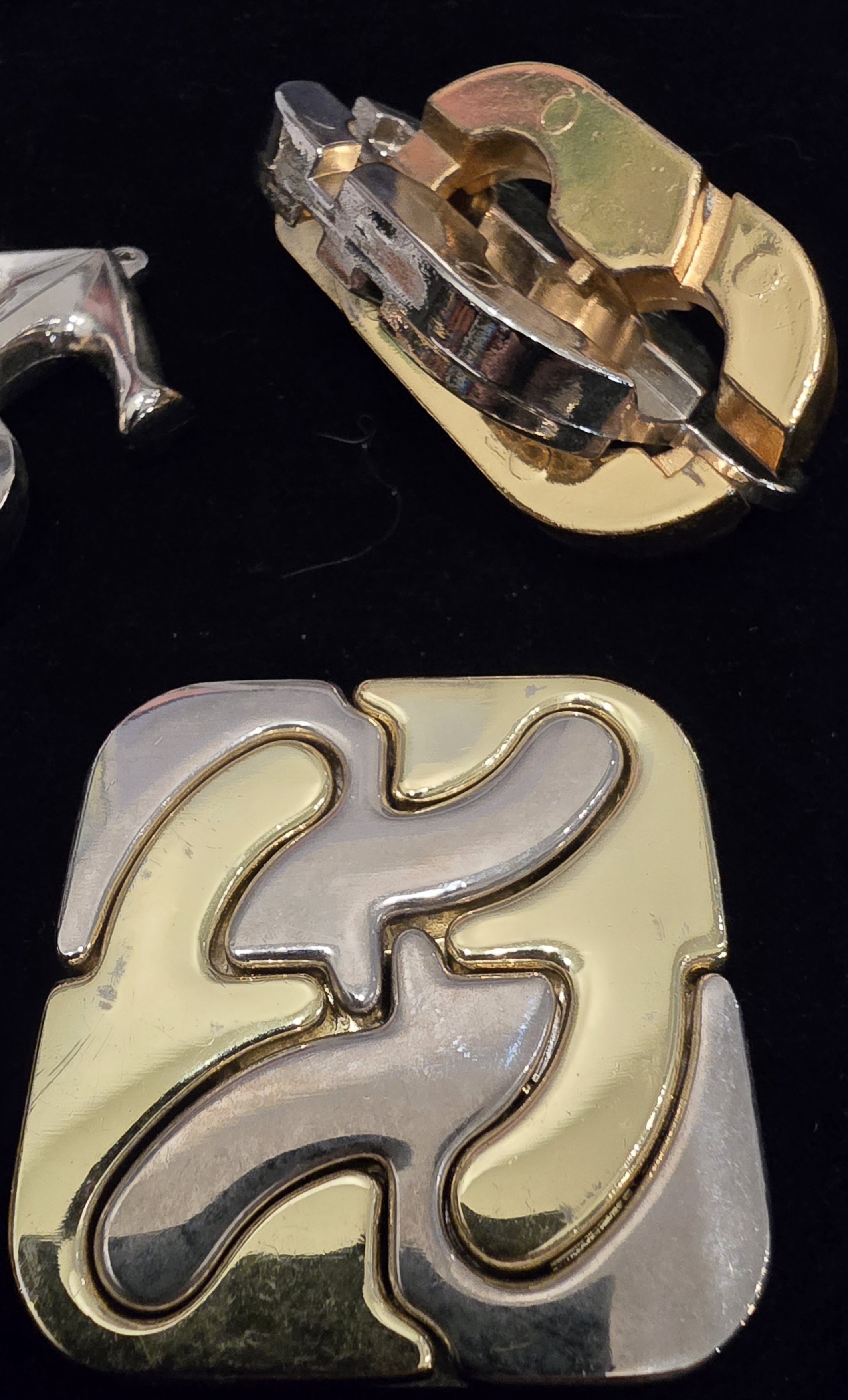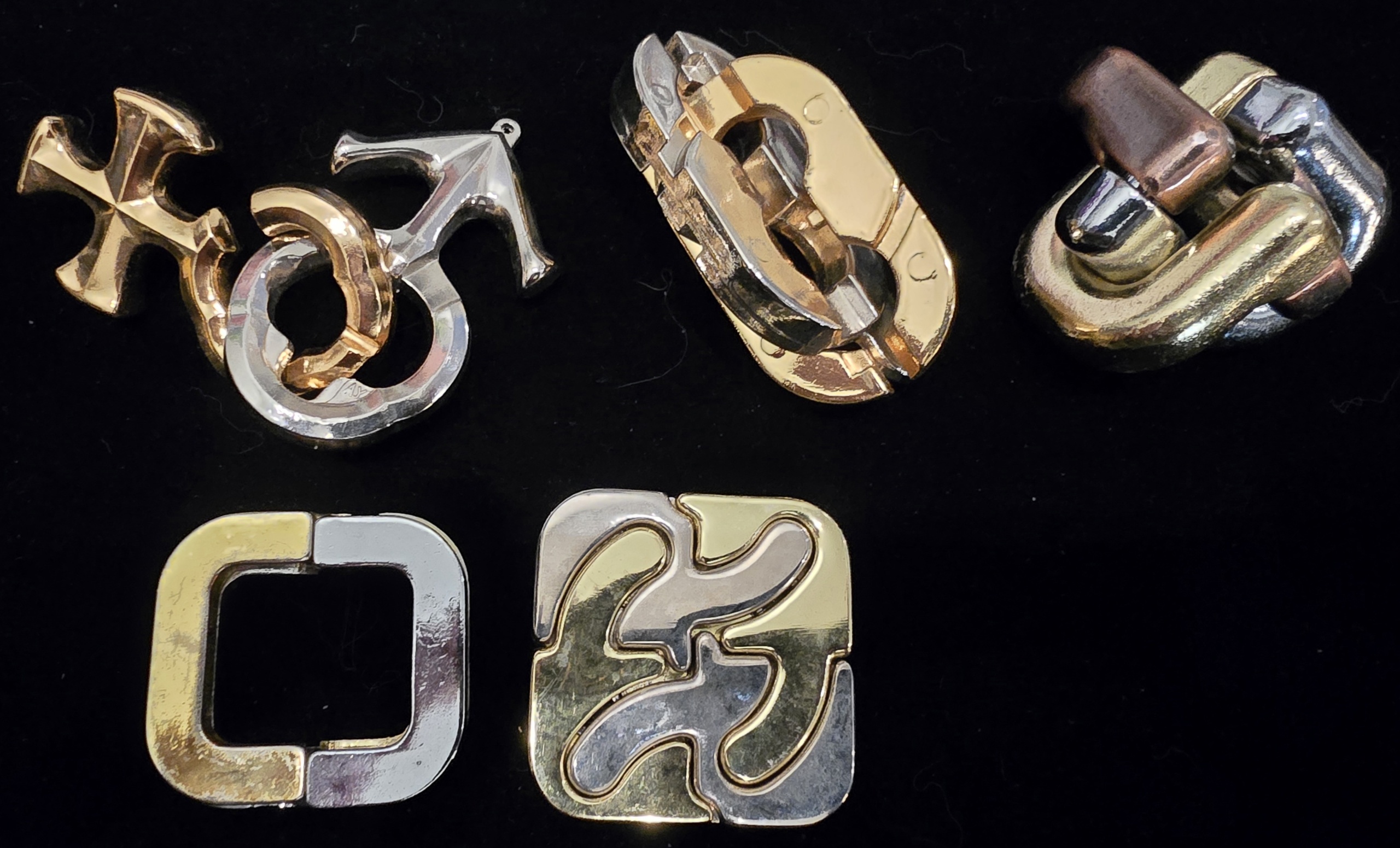 These puzzles have been gently used and display a light, authentic patina that adds to their "antique" mechanical charm. All movements remain smooth and factory-accurate.