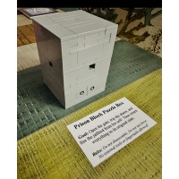 Prison Block Puzzle Box is an 18 step puzzle box with a prison theme. The goal is to "Open the gate, trigger the alarm, and free the jailbird from his cell!" Then return everything to its original state.