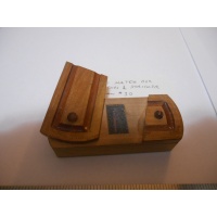 Psycho Match Box puzzle, vintage. Hoffmann's Puzzles Old & New, ch. 2, #30. Believe this one to be over 100 yrs old, as it was purchased with a lot of other circa 1900 puzzles. Has a striker plate and original matches. There's a small chip in the raised channel at the end of the puzzle (see pic), no effect on functionality.