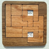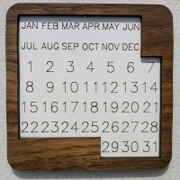 Puzzle Calendar - solve for each day of the year (cherry pieces and walnut border)