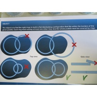 Eight challenges to arrange flat compositions of overlapping rings in the puddles shown in the instruction book.