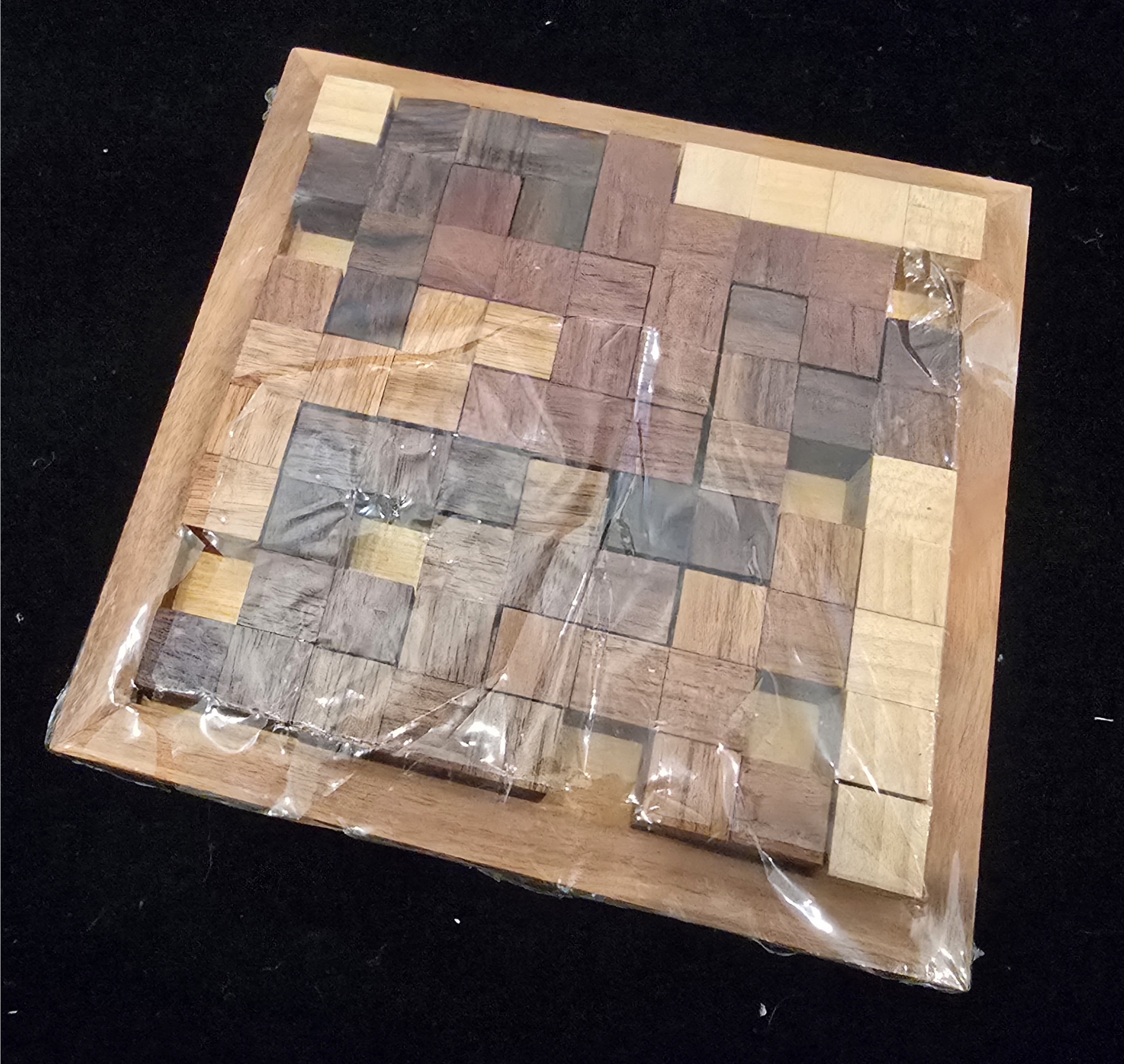 ​The Tray Puzzle: Fit all 9 pieces into the wooden tray. While there are technically 7 known solutions for the tray, finding even one is famously difficult.