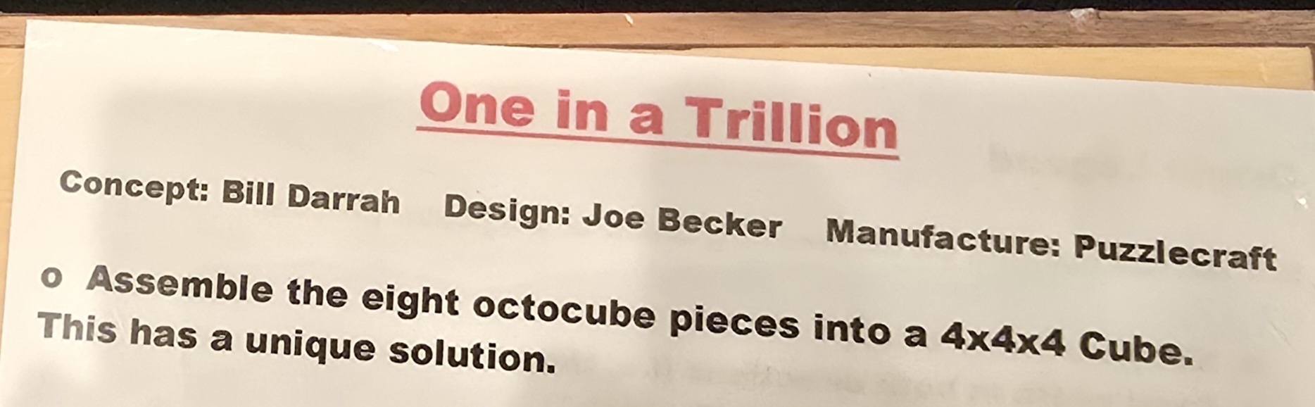 Rare IPP 31 Exchange Puzzle: "One In A Trillion" by Steve Nicholls - Berlin 2011