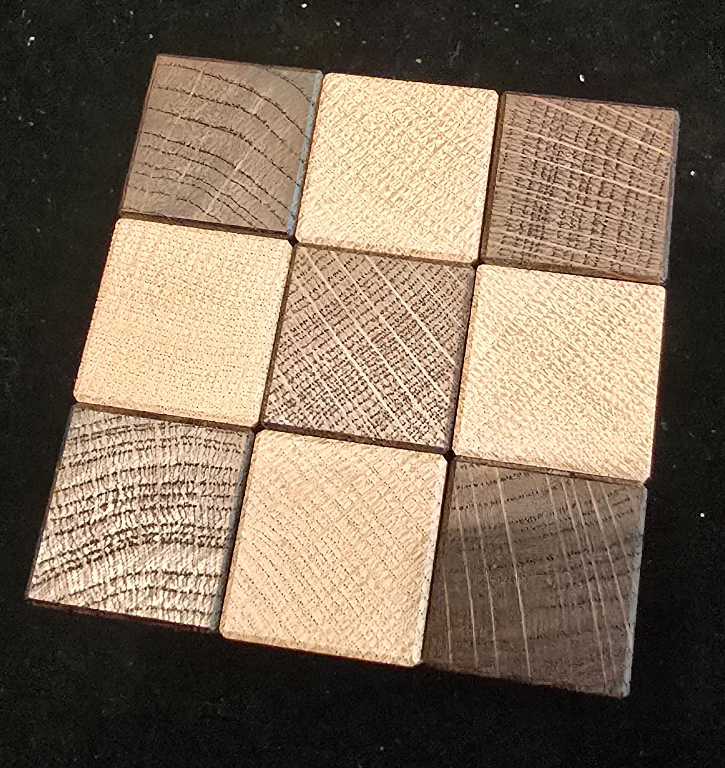 • ​Materials: Beautifully crafted from contrasting hardwoods (likely Walnut and Oak/Maple).