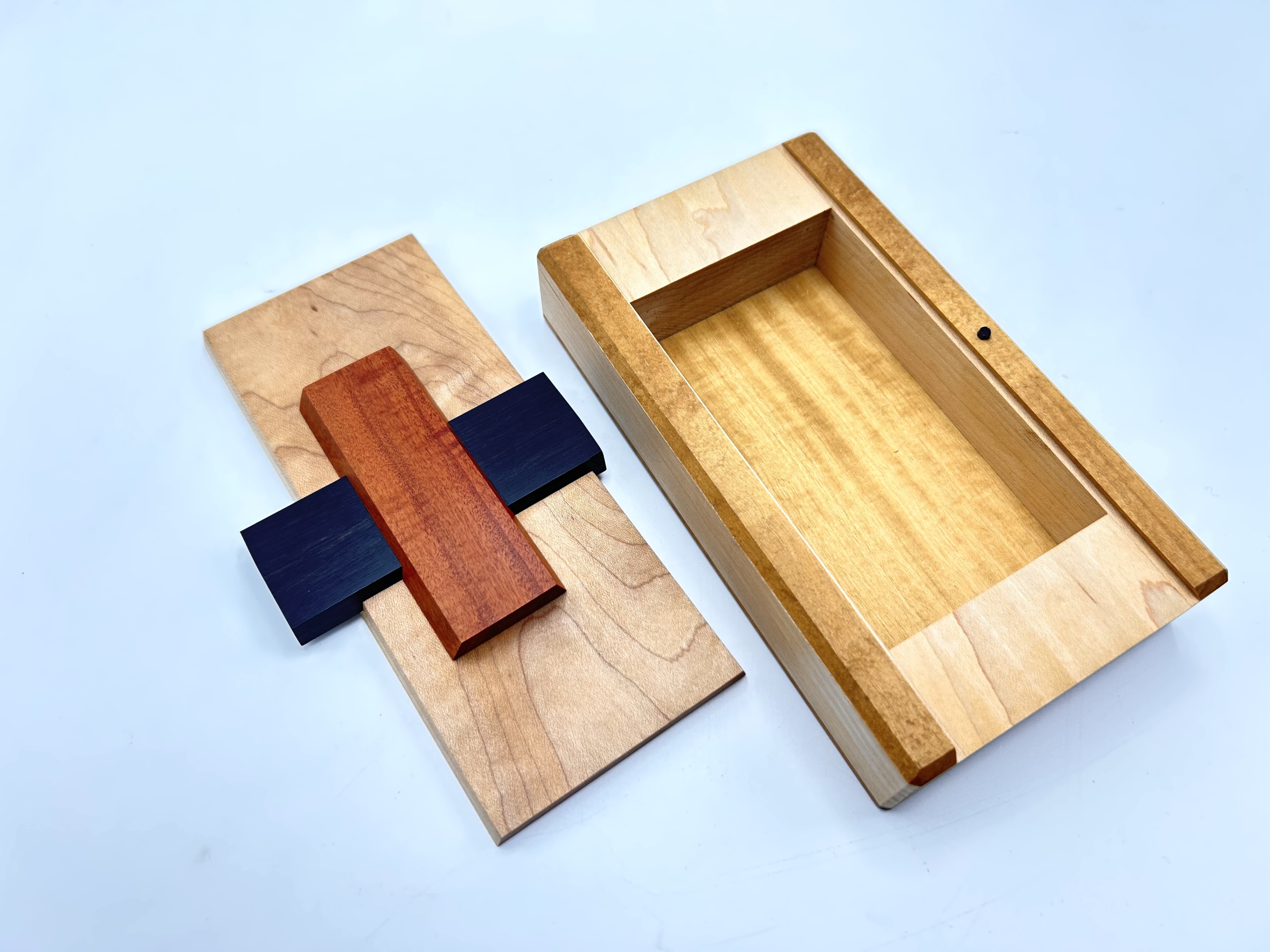 Snake Escape is a lovely 3D packing puzzle by Kagen Sound. It features 9 snakewood "snakes" that interlock in a satisfying manner, before packing neatly into the box. Comes with a certificate of authenticity, noting this piece as number 10 out of 10 ever made.This puzzle comes from the collection of renowned puzzler and magician Chris Morgan, a dear friend to me and so many others.Buyer to pay shipping, calculated after auction.