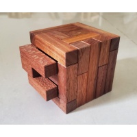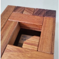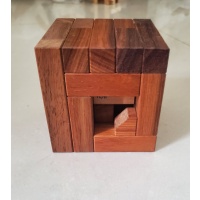 Precision made from various exotic hardwoods, I'm very pleased with how this puzzle turned out. Attention to detail is everywhere, from the 15,000+ bevels it took to make the run, to the jig gluing on a flatplate, to the overnight clamping of endgrain joints.