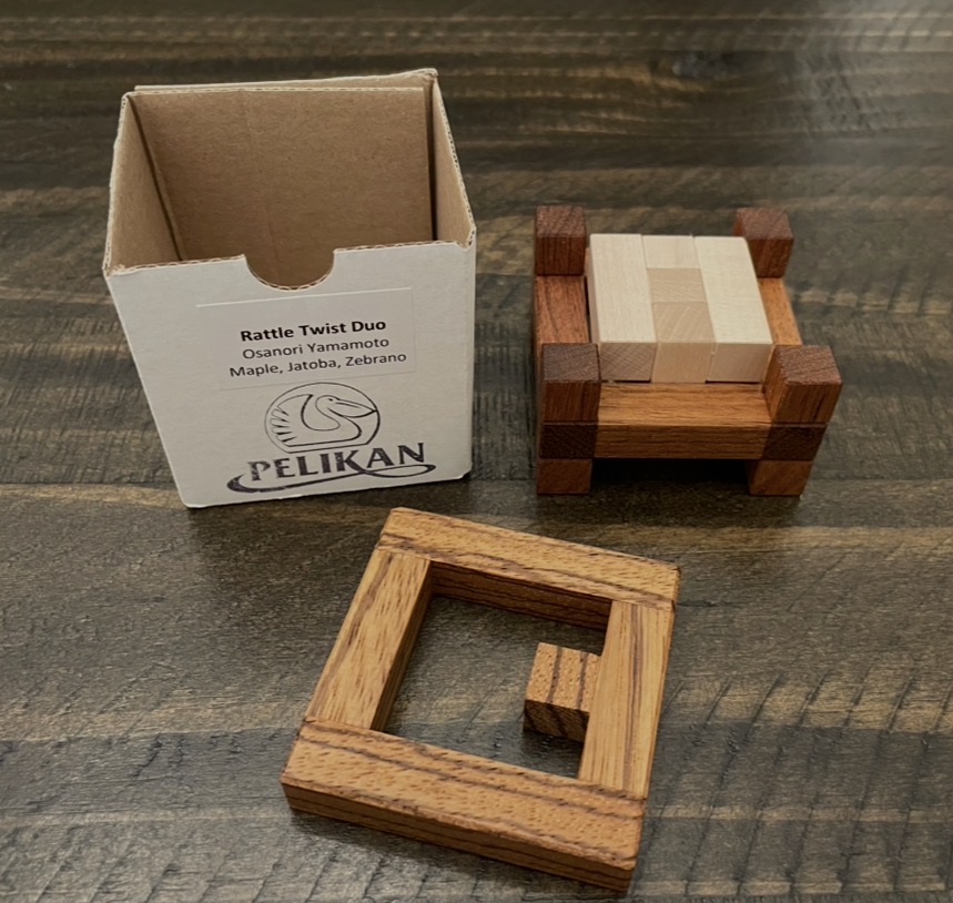 Designed by Osanori Yamamoto and crafted by Pelikan.Goal: Dissassemble and assemble the burr.Woods are Mahogany, Maple, and PurpleheartPerfect Condition. Comes from a smoke free home and properly stored.Will package with a collector in mind for shipping.*Buyer pays shipping costs and will be added at end of auction. I accept Friends and Family and Goods and Services payments. I understand the importance of G&S with buyer protection and some buyers are not able to utilize F&F.