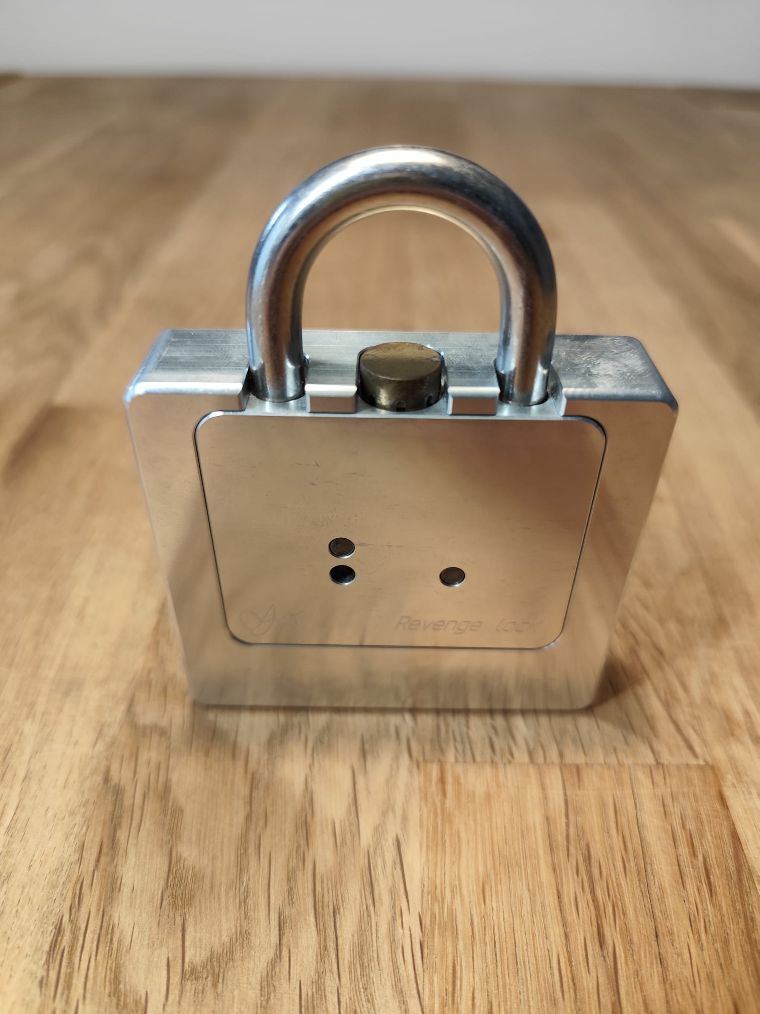The Revenge Lock is in good condition with minor scratches (see picture). The central brass "wheel" has a bit of tarnish. It's still fully functional, of course! If you like, i can add additional pictures.