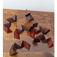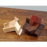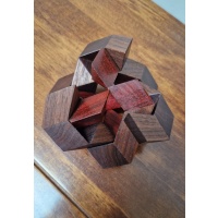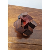 This version is finely crafted from American Black Walnut and beautiful red Bloodwood .  This is a rare puzzle and highly collectible.