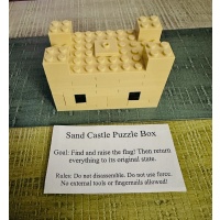 It's a 5 step SD puzzle box with a Sand Castle theme. The goal is to find and raise the flag! It's fairly simple so will likely take no more than 5 or 10 minutes depending on your experience, especially with LEGO puzzle boxes. However, I feel it's a fun theme and a satisfying solve, one you can share with family and friends since it's not overly complex nor super difficult. Plus it's pretty solid, so no worries of it coming apart!