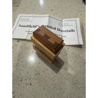 The Banded Dovetails continue the Sandfields’ association with tricked-out dovetail joints. Over the years they’ve given the puzzling world some rather impossible looking dovetail joints and used them to disguise some sneaky tricks.