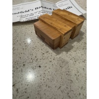 This particular puzzle has a pair of contrasting coloured boards joined by a set of beautifully made dovetails which appear to run the length of the boards. These boards are then surrounded by a pair of wooden bands that seem to be pinned to the boards themselves. All this pinning and the joints themselves give the impression of a rather well-secured little object, which invites you to find, and open, the hidden compartment.
