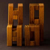 It's made out of Acacia and Purpleheart and die pieces can be arranged to spell HO HO HO. Well and you can also pack them in the box.