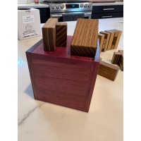 “Some years ago I experimented with notched logs in a 5x5x5 box and discovered a wonderful property in the interaction of the different parts. I settled on six copies of each of two shapes. HARUN (aka GUILLOTINE) with its two very simple shapes should be a beginner’s box-packing puzzle. But it didn’t quite turn out that way. This year I searched for more simple pairs of shapes whose arrangement is also very interesting. I have found two pairs – one of them, SANTA, is my first Christmas puzzle that I would like to present this year. Whoever enjoyed the solution of HARUN, will be amazed by SANTA. HO HO HO.”
