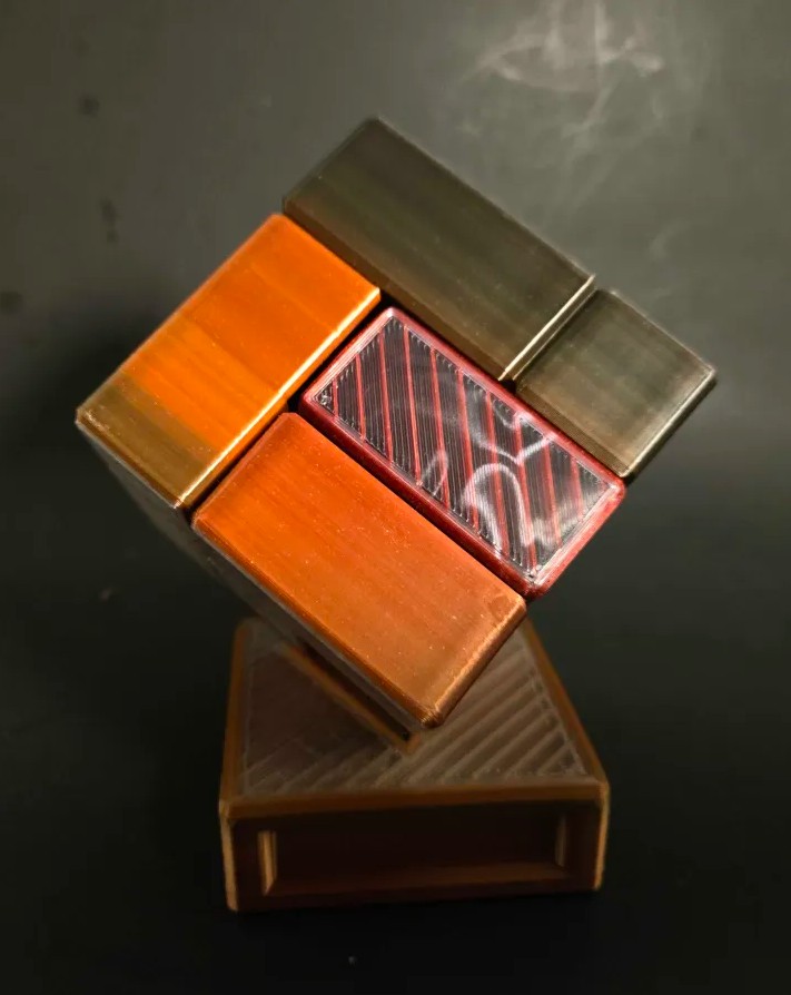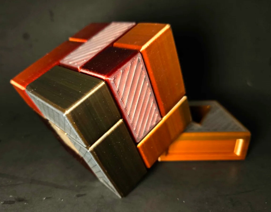 •The last Skelly Scion was bought by a collector early with access. So I made this copy so others had a chance to get one. These are made for existing Scion owners to display a cross-section / cut-through version of their puzzle next to their standard Scion. It features the same solve and does not reveal any secrets. You can pull the pieces and see how the internal space is maximized to allow all the mechs.