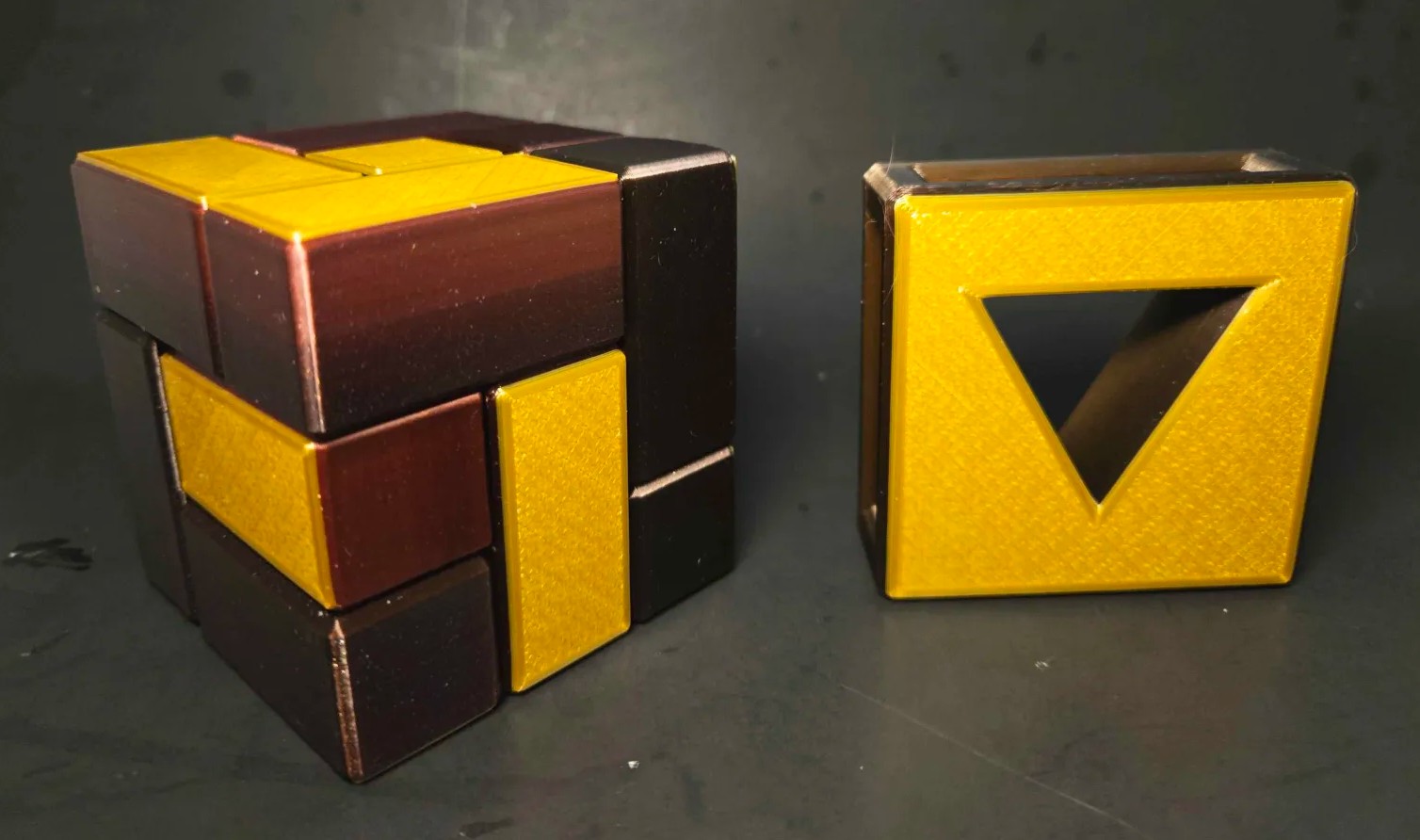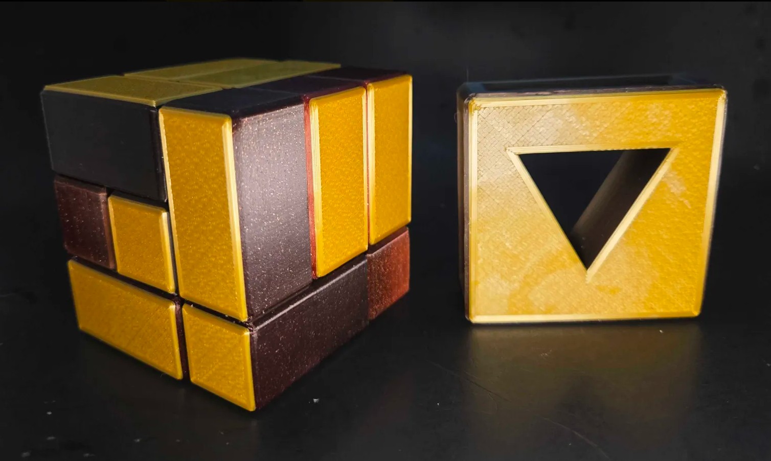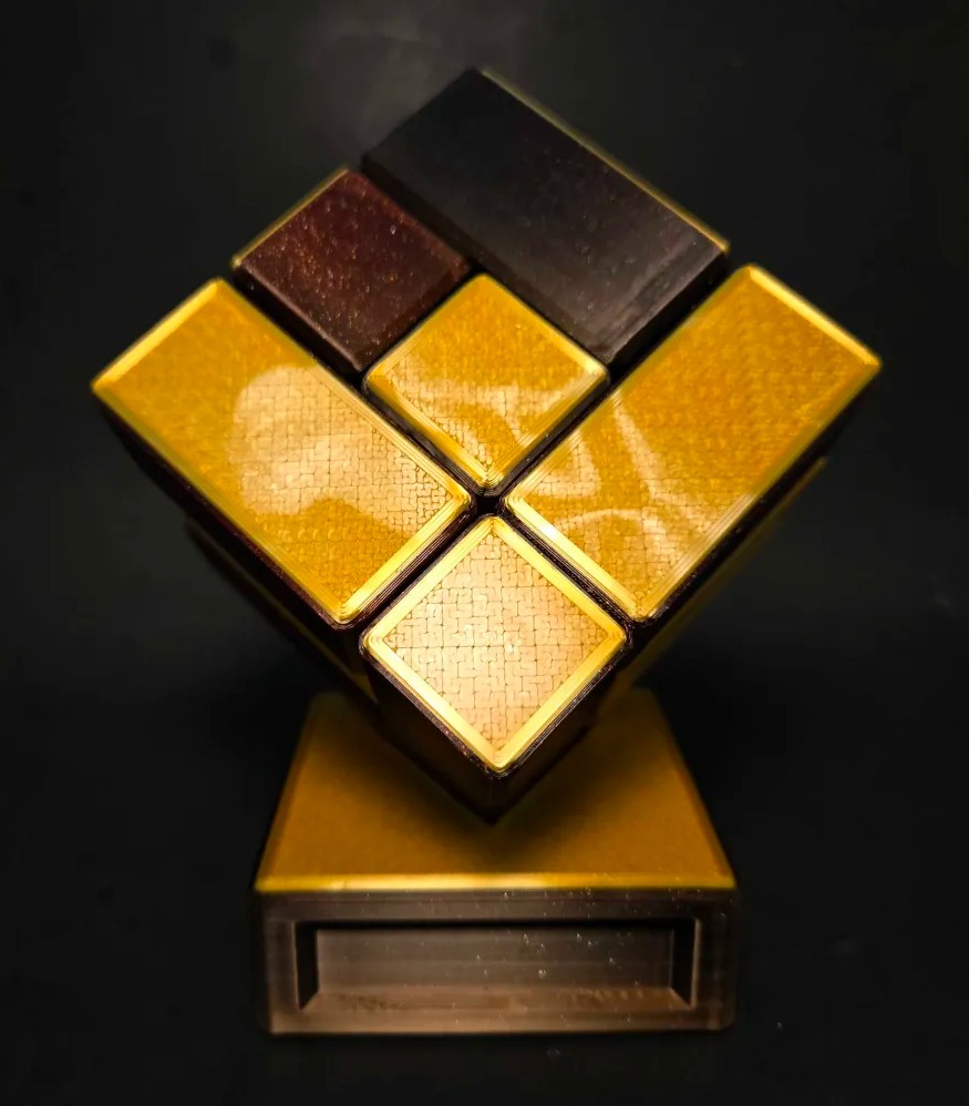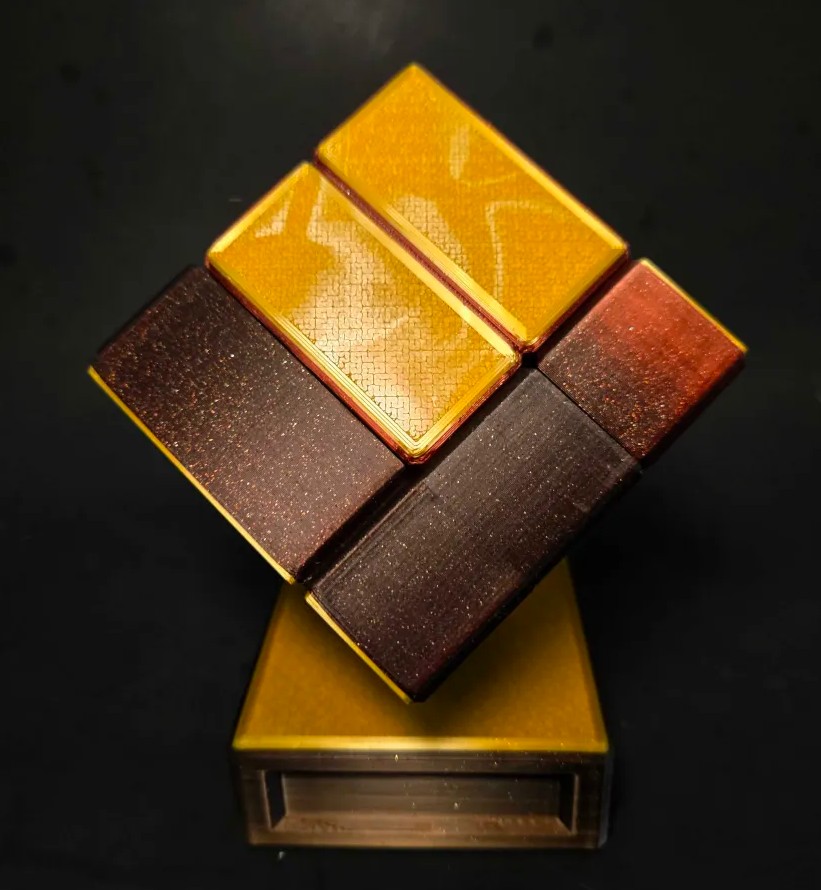 This is the final form of Scion of the Tesseract using a special black, gold, and red filament that is set to blend two colors outside to make a