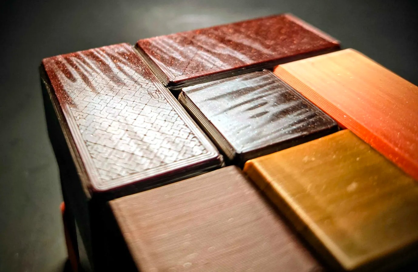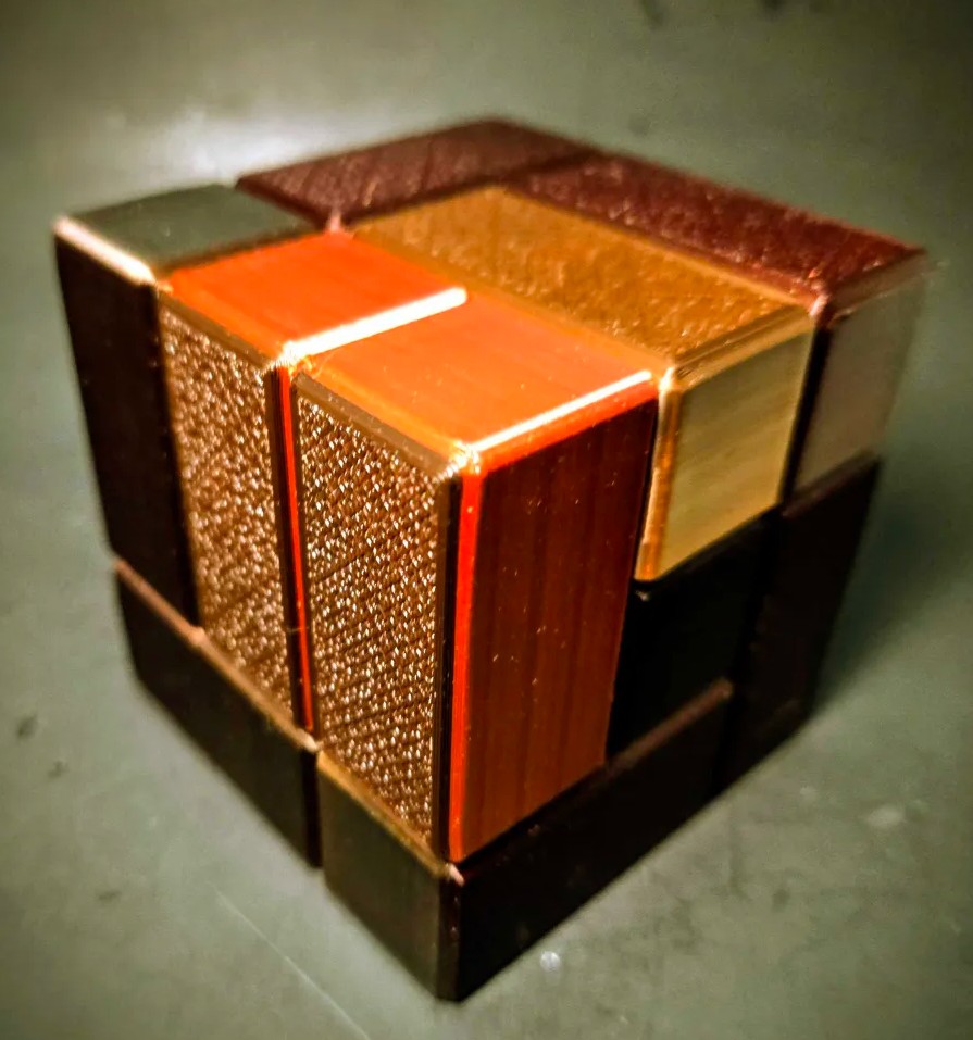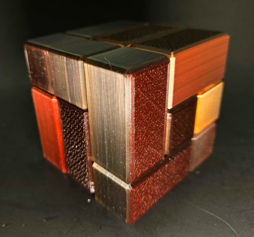 • Gradient wood style filament: Using Macassar Ebony Veneer Plates, Bloodwood, PNG Ebony. In the style of an Andrew Crowell made mixed exotic cube with the Ebony Cut Veneer look.