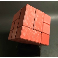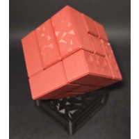 This copy is red carbon fiber with animated diamond pattern, with black carbon fiber weave internals and black carbon fiber animated diamond stand.
