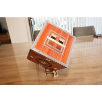 Hand constructed from kit form with poplar wood and over 500 pieces of marquetry this puzzle box took approximately 50 hours to complete to the level seen in the photos. To cap off the look the box was finished with 3 coats of gloss polyurethane varnish with an airbrush. This puzzle can be purchased from NKD directly for $2650US - click here to link to NKD page.