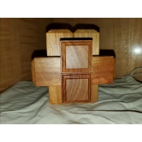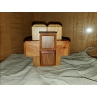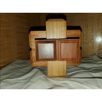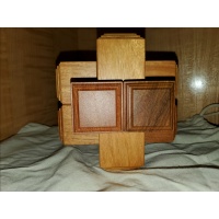 The puzzle is quite heavy and big, the cubic volume is more than twice that of SDBB. Although it has a rather simple external shape because it is just like a normal six piece burr and the tricks and gimmicks cannot be seen when the puzzle is assembled, you will soon find its complexity after playing with it. Every time you open a lid, you can make sure how the tricks work.
