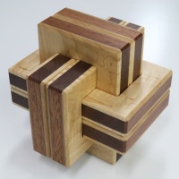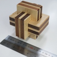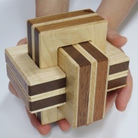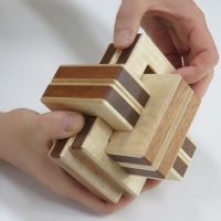 As you can easily imagine, the concept of the puzzle is the same as our former product, Sequential Discovery Burred Box. The puzzle looks like a 6 board burr and it actually behaves like ordinary burr puzzles. Once you start playing with the puzzle, you will soon be aware that the puzzle is quite extraordinary. Several tools are used to reach the goal of the puzzle. The required steps to reach the goal is more than 10 depending on how it is counted. If the puzzle is considered as normal burr puzzles, the level of the puzzle is nearly 20. The same as our former sequential discovery puzzles, if you observe the puzzle carefully, you will find hints to conquer the puzzle. The overall difficulty of the puzzle is almost the same as Sequential Discovery Burred Box and is easier than Slammed Car.