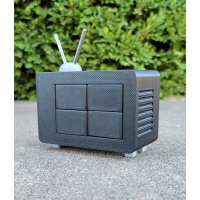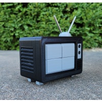 "SDTV is a hybrid six piece burr and sequential discovery puzzle. The goal of the puzzle is to find the lost remote. No force, banging, shaking or spinning is needed, and any necessary tools will be provided along the way. This puzzle contains small pieces which can appear suddenly. It is recommended to solve on a flat surface. Not intended for children. This puzzle is of moderate difficulty. SDTV is 3d printed from black and grey PLA. Contains small metal parts and magnets.
