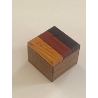 The exterior of the puzzle measures approximately 63 x 63 x 51 mm. with internal spaces of 31 × 28 × 15mm and 38 x 18 x 15 mm.