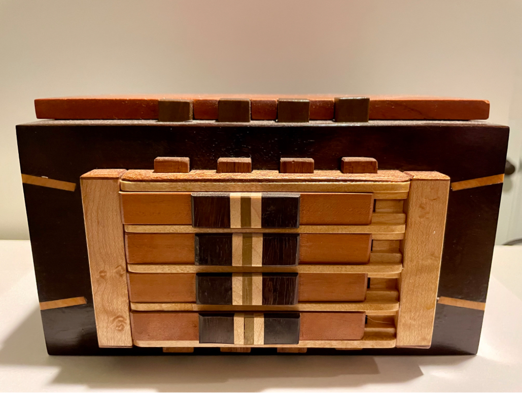 This puzzle has a somewhat complicated solution that works like a maze with dead ends and backtracking that can result in a very lost puzzler. These boxes were made with the ability to be reprogrammed into a different combination once the box is opened. Unlocking this box may seem easy until puzzle solvers realize they are trapped in a maze web and will need to figure out how to backtrack and start over again.