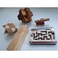 - Wooden two-panel maze/labyrinth [objective: free the metal bolt]