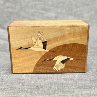 This traditional Japanese Yosegi(marquetry) style secret box. The box is designed with beautiful wood inlay featuring “Sharaku”, a famous Japanese ukiyo-e print by Haruo Uchiyama. Also There is inlay art of cranes, which is a symbol of Mr. U’chiyama’s design.