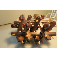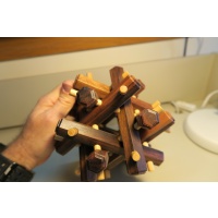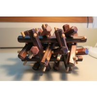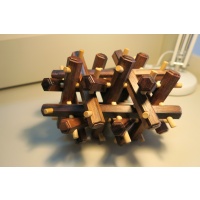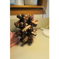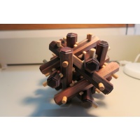 This a Stewart Coffin designed puzzle, built by Brian from Mr. Puzzle.  Number 29 of 30 puzzles made.  Made in 2008.  The hexagonal pieces are made from Papua New Guinean Ebony. The dowels are made from Ramon wood.  Size: 220mm x 170mm x 170mm.  I have never attempted to take it apart or put it together.  I have kept it in a clean, smoke free house.  I dust it regularly.  Let me know if you would like more pictures or want more information.
