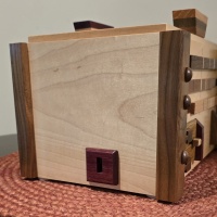 A big, beautiful SD puzzle box. Crafted with maple, walnut, cherry, oak, purpleheart, alder, poplar and padauk.